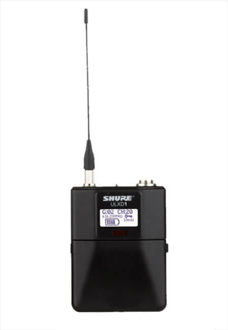 The ULXD1 is a wireless bodypack transmitter compatible with ULX-D® Digital Wireless Systems.
