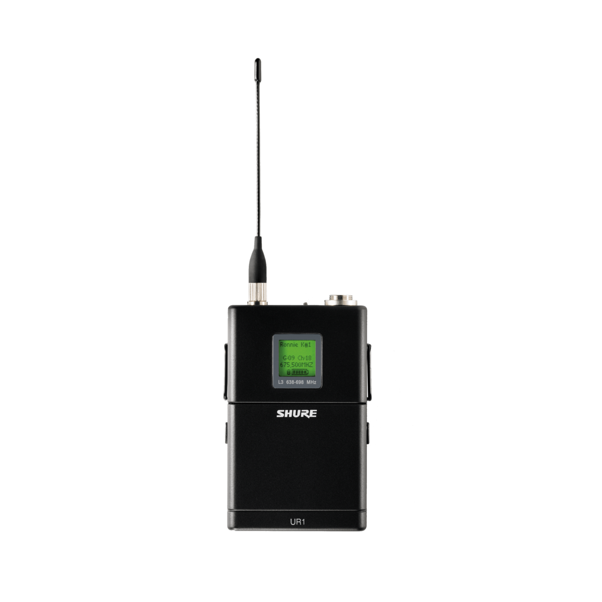 The UR1 wireless bodypack transmitter, built from lightweight magnesium, offer a sweat-resistant, compact design engineered to withstand the abuses of the road. It works with headworn, lavalier, and instrument microphones and cables. Its removable antenna provides additional flexibility, and a threaded connector securely locks microphone or instrument cables. Other advanced features include a multi-function bit-mapped LCD, frequency and power lockout and infrared automatic transmitter sync. The UR1 can be u